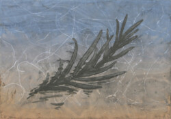 作品を囲う部分に柔らかな波を思わせる裂を配することにより、絵の外に波の動きと海底の広がりが生まれたのです。