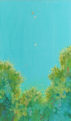 After solo exhibition last year, production was stalled in terms of technique and technology. By keeping the production to make the best use of handmade Japanese paper, I got the feeling that my expression spreads. I realized that I had to find out the affinity between the support and the paint, instead of forcing the colors to be painted over and drawing in a deceptive manner. I wasn’t able to do the obvious thing.