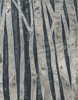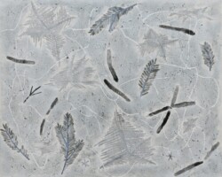 今回全ての作品のベースに墨を使用しました。マチエールとして墨と水の作用を色々と試してみて、それらを木の表皮や雪の結晶・霜の表現につなげてみました。
