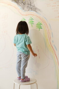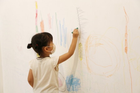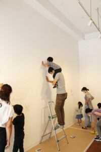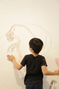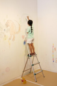 いつもは絵画や彫刻を展示している当ギャラリーの高さ3m×幅7.5mの白い壁に直接思いっきり絵を描いてみませんか。